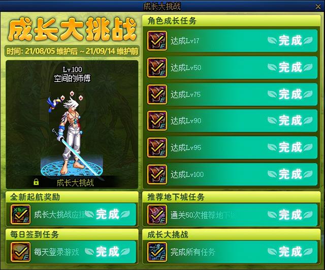 成长大挑战活动可以以助力角色快速成型,完成相应任务可以获得12件代号:希望装备用于BUFF换装,一件强化10锻造5的暗黑圣战之溯回武器和8件Lv100传说装备自选礼盒。