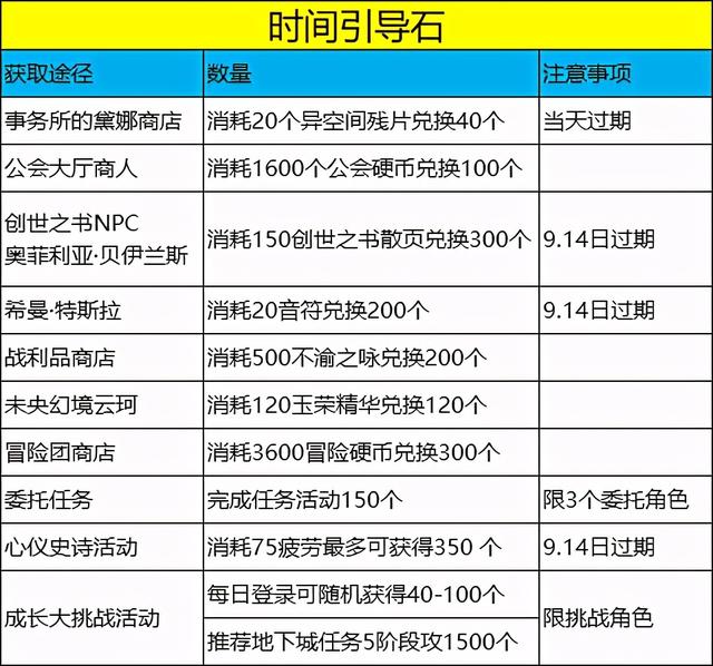 入场新深渊需消耗的27个时间引导石,笔者将当前时间引导石的获取途径整理了一个表格给大家。