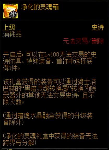 在拥有100级传说装备后,推荐刷痛苦地下室和暗黑神殿,可获得暗魂水晶。可将传说装备、超界防具、普雷装备可以用暗魂水晶和堇青石升级成100级史诗装备大自然的呼吸套装、精灵使的权能套装和能量主宰套装。