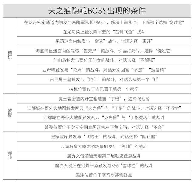 最后,3大BOSS出现所要满足的条件如下: