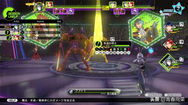 战斗系统延用了P系列的属性弱点系统,每个角色的攻击属性和弱点都不同,击中敌方弱点可引发多人连携,我方被击中弱点则会被击倒甚至昏厥,战斗动画是角色的舞蹈歌唱演出,真人演唱的那种哦。