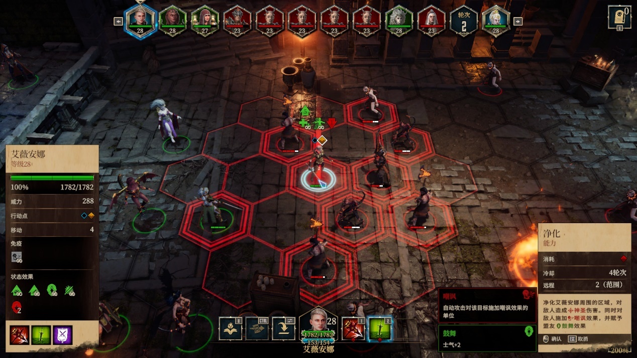 至于战斗环节,首先就是加入了RPG元素,英雄也可以直接参加战斗了,通过升级英雄可以获得技能点,提升自己和部队的整体属性,通过更换装备提升英雄的能力。而战斗方面,依然采用了六角方格的方式进行回合制战斗,唯一的变动就是角色的行动不再是只能行动一次,而是采用行动点进行行动,并且行动点也分为了三种类型,不同类型的行动点能够产生不同的效果,这点上还是比较有意思的。