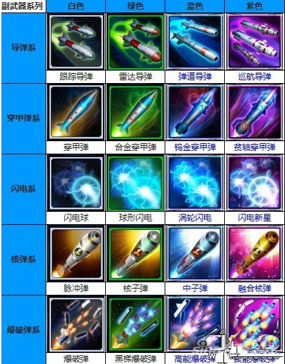 副武器:一般是跟踪弹,自动追踪目标