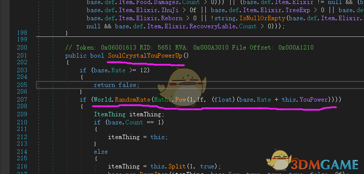 第二条横线就是概率判定。原文是 (World.RandomRate(Mathf.Pow(0.9f, (float)(base.Rate + this.YouPower))))