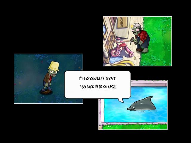 海豚骑士的海豚其实也是一种僵尸,它能够大幅提升海豚骑士的行进速度,还可以帮助海豚骑士越过第一株遇见的植物。对了,海豚僵尸甚至还在MV中有自己的台词,说它想要吃掉你的大脑。