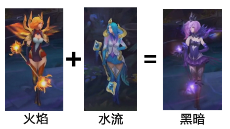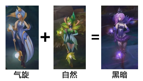 其实这个元素构成的方式和结果还是很符合我们现在的世界观的。细心的朋友会发现,黑暗会有两种不同的公式合成。因为黑暗:是融合了两种极端的元素在里面~有点性格分裂的拉克丝。