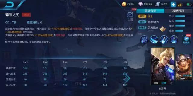狂铁是一个非常典型的战士,铭文推荐百穿狩猎。出装也是非常标准的战士出装。