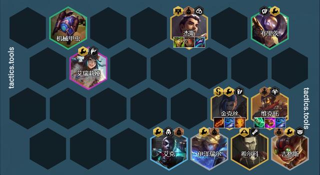 阵容组成:炸弹人、ez、机器人、艾克、刀妹、金克斯、杰斯、维克托、希尔科