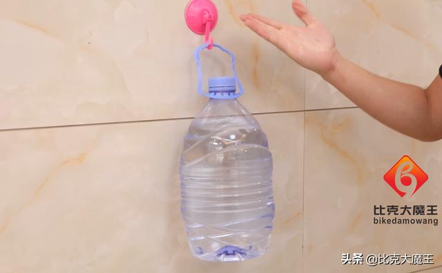 等它变干,我们来看一下效果,时间差不多了,我们一定要等它完全变干,现在来试一下它的效果怎么样。准备一大桶水试一下,轻松挂牢