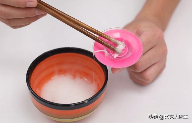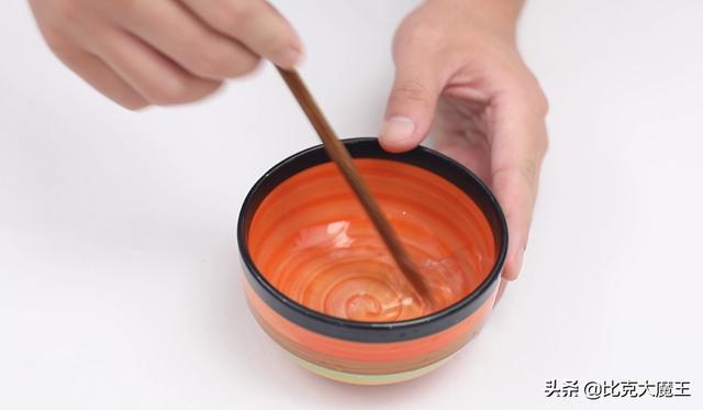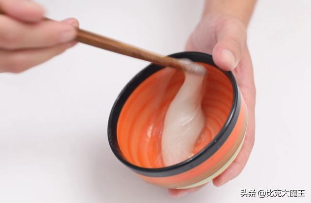 我们要搅至溶液变色为止,就像打鸡蛋一样,打成这样就可以了,我们把它涂抹在我们的吸盘挂钩上