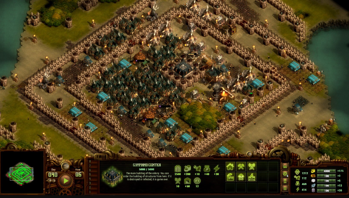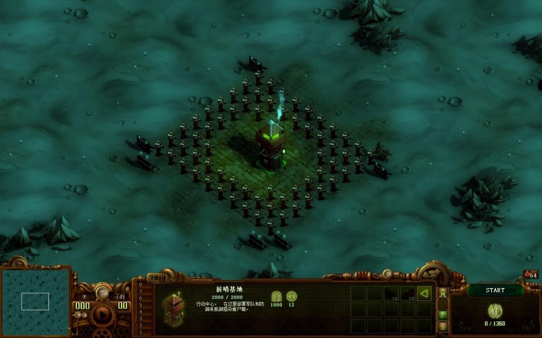 在游戏开局,我们只有一座主基地以及五名装备简陋的士兵。我们需要合理利用这些初始条件来防守住前来进攻的感染者,然后通过搜集更多资源、建设更多设施、训练更多士兵以及扩张更多领土来提升我方实力。
