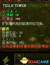 注意,扩张领地范围需要电力菜单下的这个特斯拉电塔,要在电塔范围内才能建造。