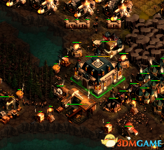其余就是传统RTS的操作了,但只有士兵才能选取,从屋子里出来的工人是自己走的。