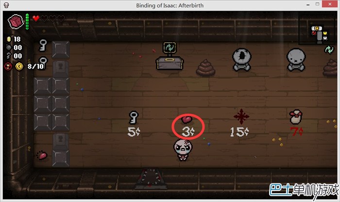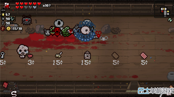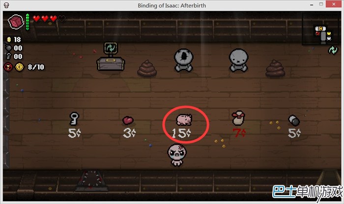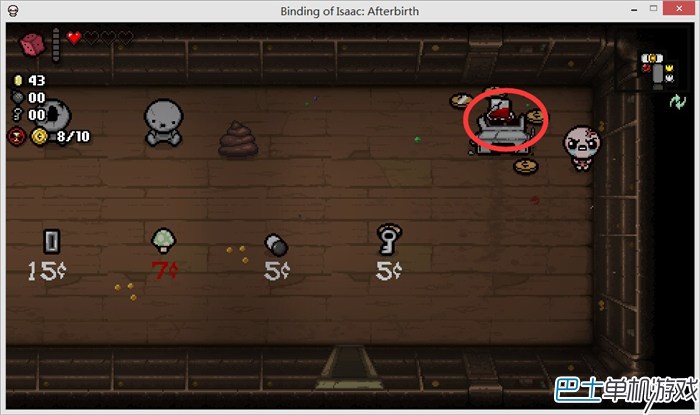 进入上面的房间,我们可以看到“小猪(储蓄罐?)”、“献血机”,还有必出的红心。