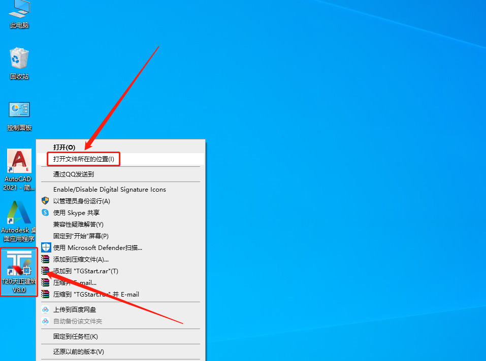 在桌面上找到天正软件图标,鼠标右击选择【打开文件所在的位置】。