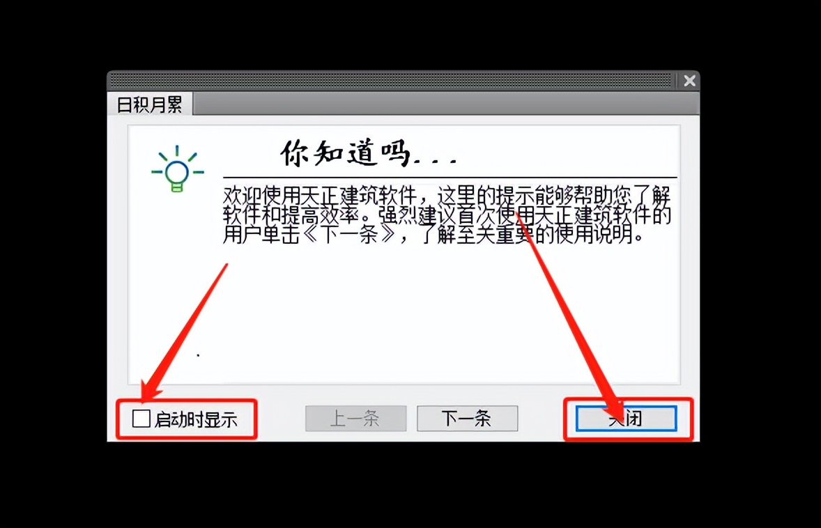 取消勾选【启动时显示】,然后点击【关闭】。