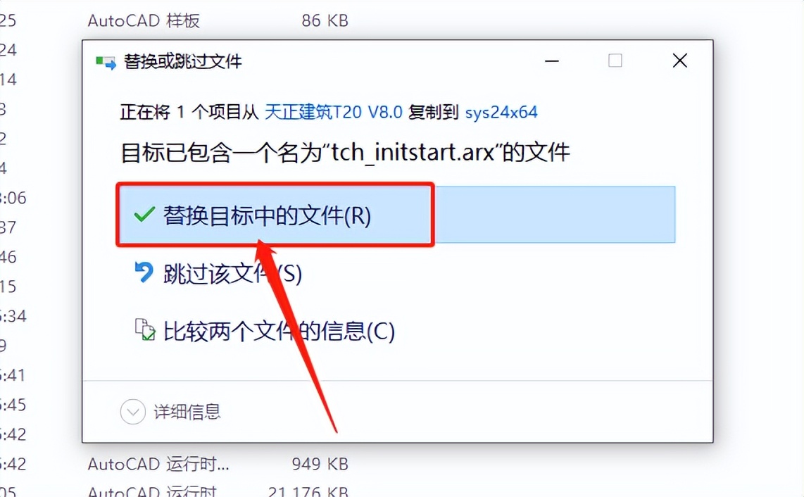 弹出的提示框中点击【替换目标中的文件】。