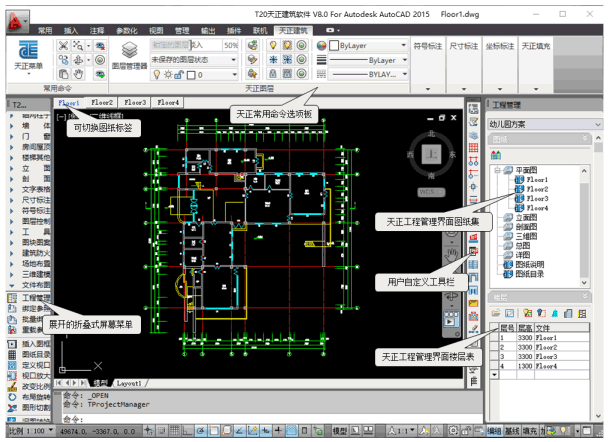 天正软件是在 AutoCAD 图形平台成功开发的一系列建筑、暖通、电气等专业软件,天正T20是利用AutoCAD图形平台开发的最新一代建筑软件,用于对图像的二次加工,从而设计出符合建筑行业的图纸。
