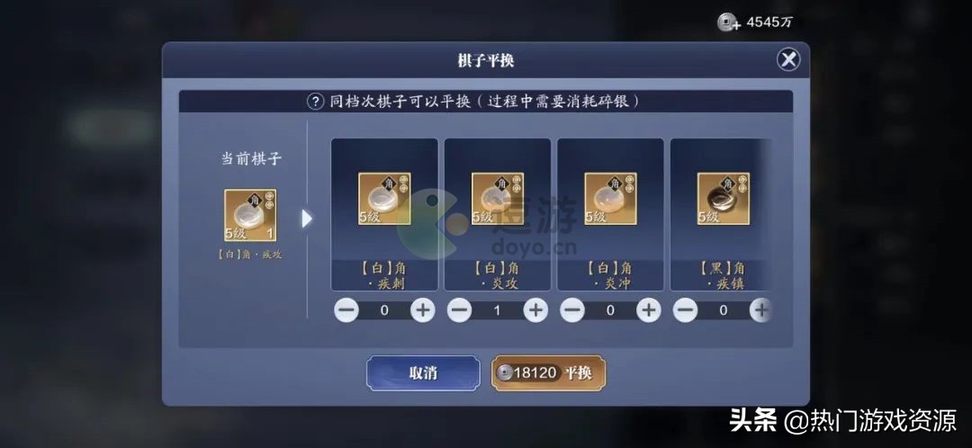 8.无损兑换:比琅纹更人性化的一点就是,同价格类型的棋子可以直接无损兑换(只损耗20%碎银合成费用)。不用愁自己买错了,除非神豪,不然各个类型的棋子我们都会用到。