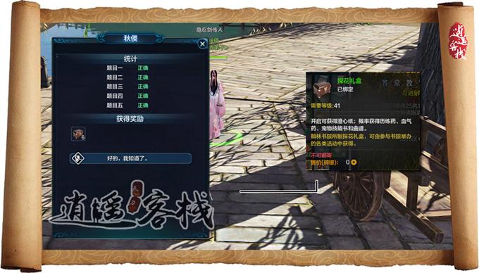答题完成一次后NPC君便会赠送奖励,最常见的是每一次探花箱子3-6个不等。其他还有修为以及阅历。端看参与答题的玩家人品如何啦~这里有个小窍门,玩家寻找到的NPC越多,奖励也会越丰厚哦