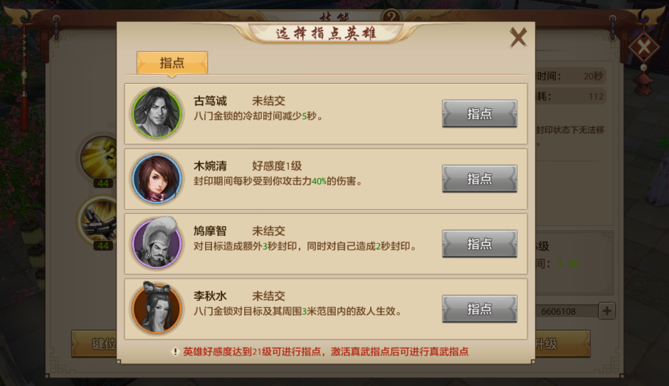 指点江山指点选择丁春秋或无崖子,指点江山原本就强化伤害,追求输出最大化的话 选择无崖子,额外提升10%;追求控制更上一层就选丁春秋,附带3秒定身。