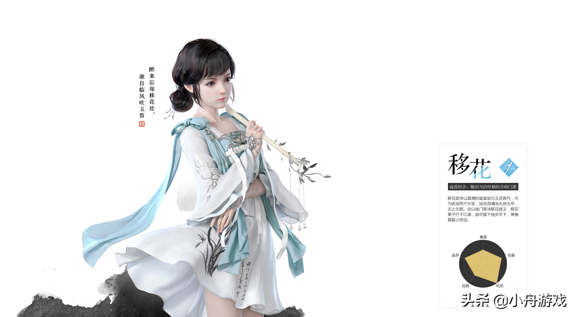 移花:天涯明月刀手游机动性最高的职业,能输出能奶,更擅长群体控制,在PVP和PVE中都有不俗的表现。喜欢玩高机动性职业的玩家首选移花。
