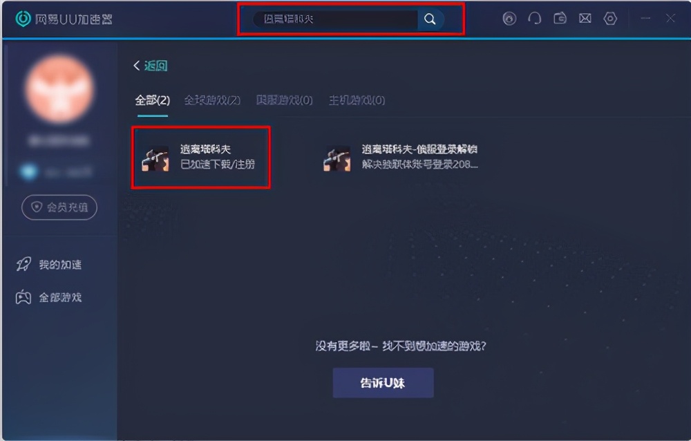第一步:打开网易UU加速器,在顶部搜索框内搜索“逃离塔科夫”,点击红框中的游戏,进行加速。