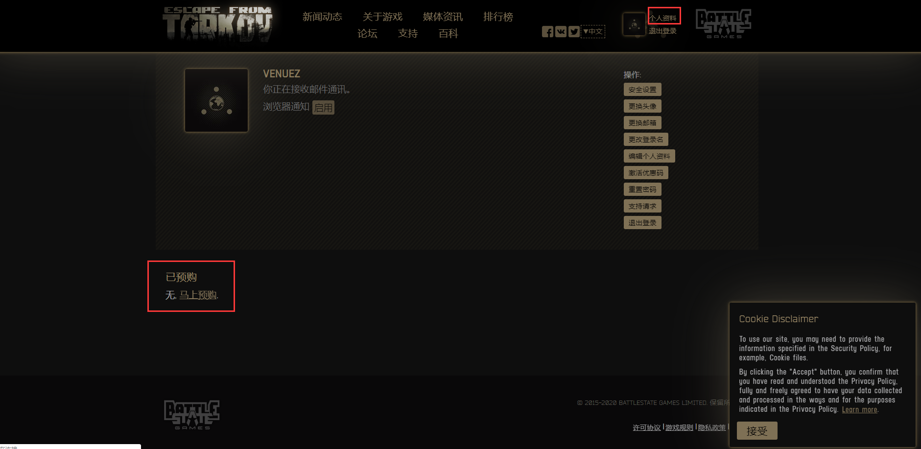 点击“个人资料”,选择“马上预购”: