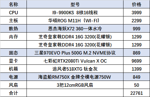 最后,当然就是我们不差钱老板要的顶级配置了,我们玩什么游戏,我们只是去游戏里看看最美的风景,CPU I9-9900KS加2080Ti 11G显卡,32G内存装上,一套配置全极致画质可以玩儿到游戏退休都无压力了。