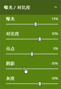 曝光度我选择14,对比度30,亮点0,阴影-30,灰度30.