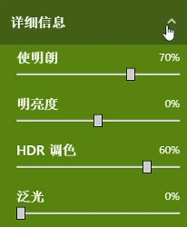 使明朗70,明亮度0,HDR调色60,泛光0.