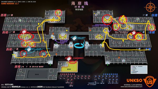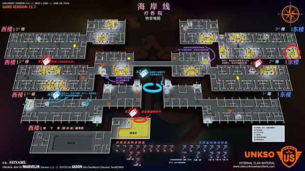 而按照以上介绍的顺序,同时也是我个人推荐的跑刀线路。我知道光这么纸上谈兵,对疗养院不熟悉的你们依然没有什么直观的感受