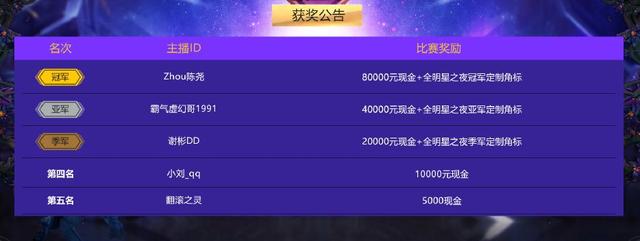 霸气、奶哥哥、小刘和翻滚之灵分列全明星的2-5名,也都收获了自己的名次奖励。