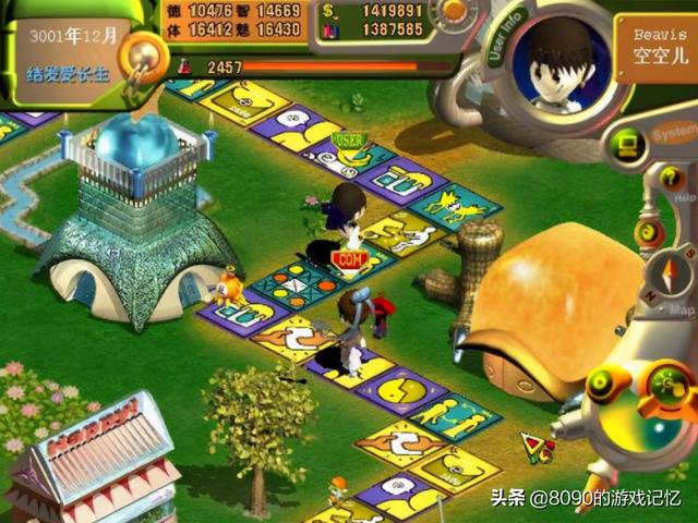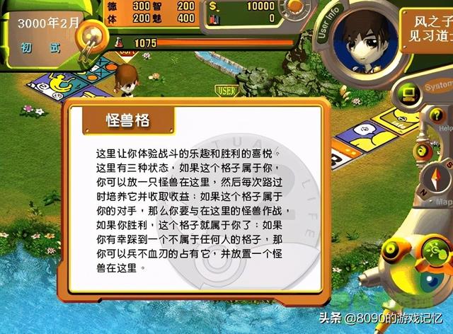 玩家可以在走格子过程中遇到怪物,通过跟怪物交战来获得经验并升级,而玩家想要完成关卡并不是说要赚到多少钱,而是将守关的关口杀死才行。这样游戏就变成了玩家通过摇骰子的方式在地图中不断练级、不断提升自己的战斗力并最终击败boss完成关卡,《虚拟人生2》让强手棋的玩法愣是玩出了RPG的感觉。