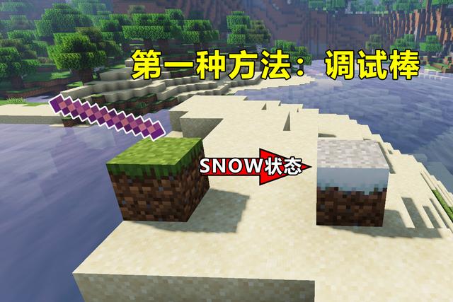 可以获得一个被附魔的木棍,它的学名叫做“调试棒”,可以调整游戏中大部分道具的状态,而草方块便有一个隐藏形态:雪系草方块!但是调试棒是java版的专属道具,那么基岩版有没有办法调出这种形态的草方块呢?