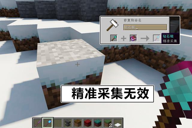 这种稀奇的方块,能否将它变成道具形式放在物品栏里呢?图酱先用精准采集的钻石锹进行了测试,将其破坏之后,它会直接恢复成普通的绿色草方块。