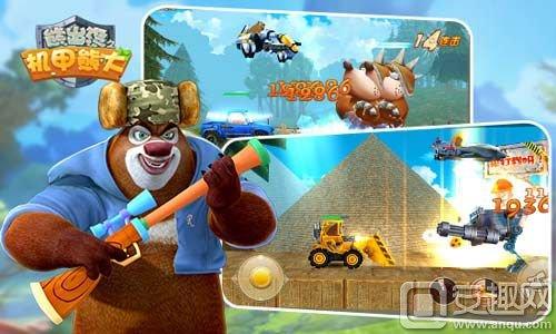 游戏风格不同于之前的《熊大快跑》,这个暑假让你换口味。熊大和熊二齐上场,百变造型任你选,皮卡车熊大、坦克熊大、推土机熊大、战车熊大、机甲熊大,飞机熊二、战斗机熊二、侦察机熊二、未来熊二、星际熊二,多重组合,随便你。百变换装,逗趣造型,战机强化,配件升级。