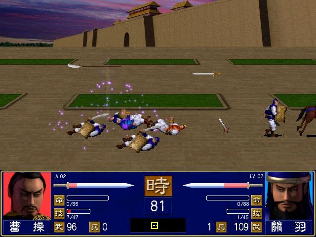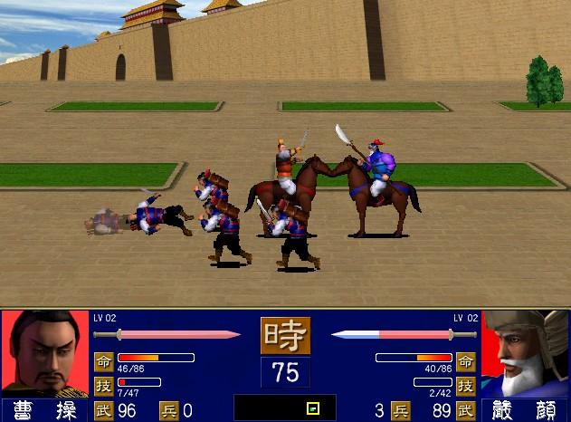 1代的好处是没有砍人,省去了牛逼武将被砍的取档麻烦,不过这也是1代玩法上比较BUG的地方。以前有个打法,就是专门组一队属性垃圾的光杆武将(不带一个兵),用来先锋头阵,目的就是消耗对面的小兵和武将计,然后被抓了也无所谓(垃圾平时也是做板凳,上阵浪费兵),反正不会被砍,下次继续。唯一麻烦,是两面城市被攻下之后被夹中间,那真是叫天不应,又不想被抓,只能两头流窜鬼畜进行时。