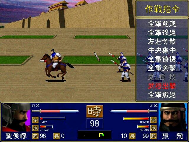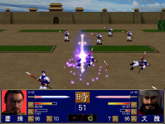 武将培养是一大乐趣,虽然1代的武将难看了一点,但是招到名将还是十分激动,武力排行和传统印象一样,吕布-赵云-典韦-关羽-马超-张飞,依次排开,吕布是空手的100满格。文官不像三国志系列无人权,高智力、高等级的文官,配合超强力的武将计,再加精英小兵,输出爆炸,瞬间让武官陷入人民战争的汪洋大海。