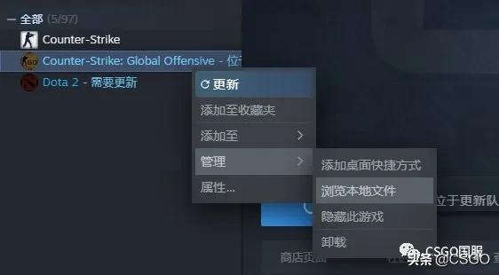 3.在steam的库找到CSGO,右键CSGO——管理——本地文件——csgo——cfg,将你的cfg文件放进去即可。