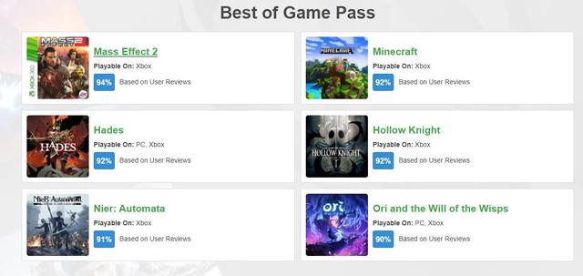 根据HowLongToBeat用户数据,XGP评分最高游戏: