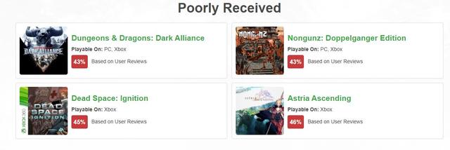 根据HowLongToBeat用户数据,XGP评分最低游戏: