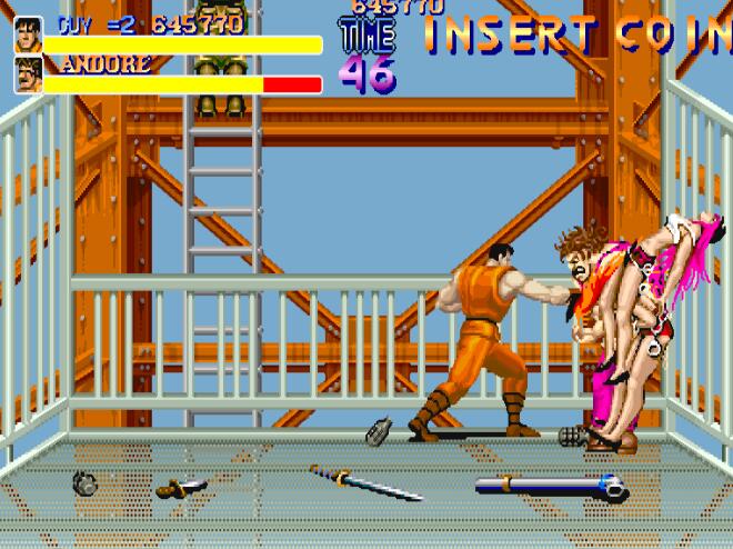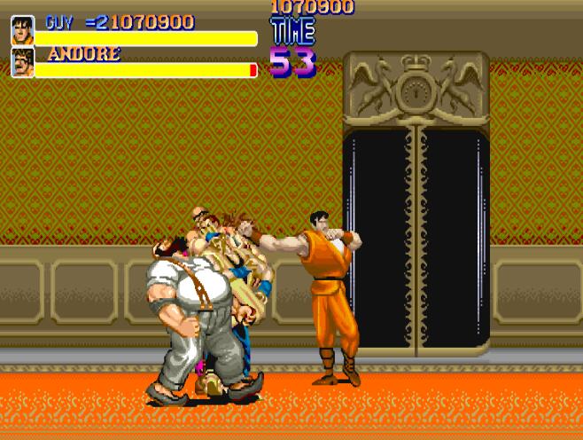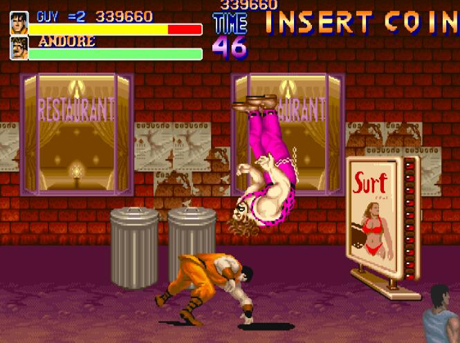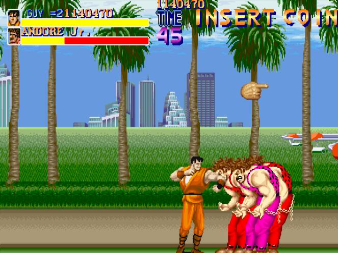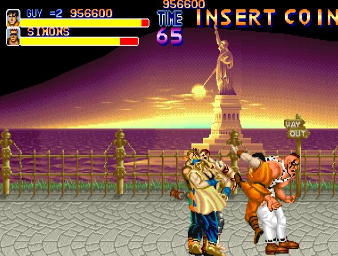 今天冰冻西瓜小辉带来的是她们的前身,经典的街机游戏快打旋风街机版,1989年CAPCOM开发发售的街机快打旋风,游戏中玩家将作为Metro City新上任的市长麦克哈格(市长居然是一位满身横肉的大叔!=_=),带领自己的准女婿CODY及武学门派弟子凯GYU一起向敌人总部发起进攻以救回自己的被绑架女儿杰西卡!