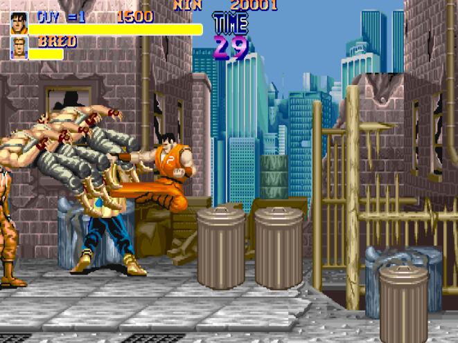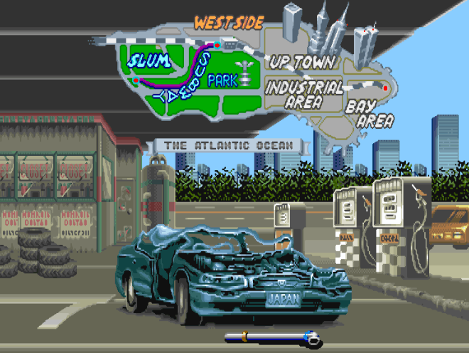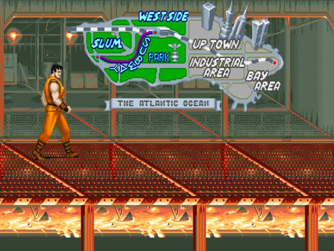 第1关SLUM(街道1+地下室+街道2),流程短,敌人易对付.