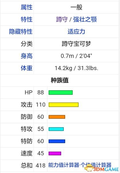 六维攻击高,耐久优秀,速度低,种族值方面还是相当不错的