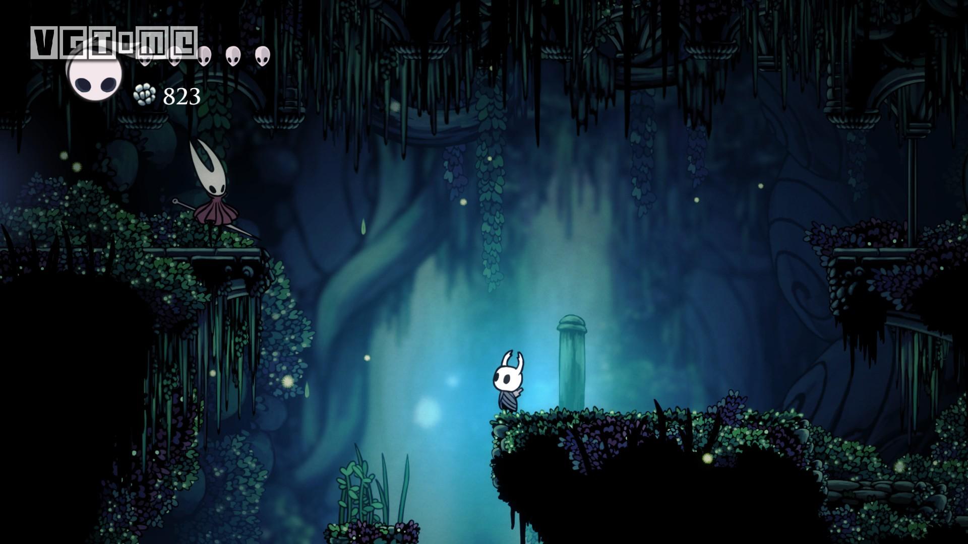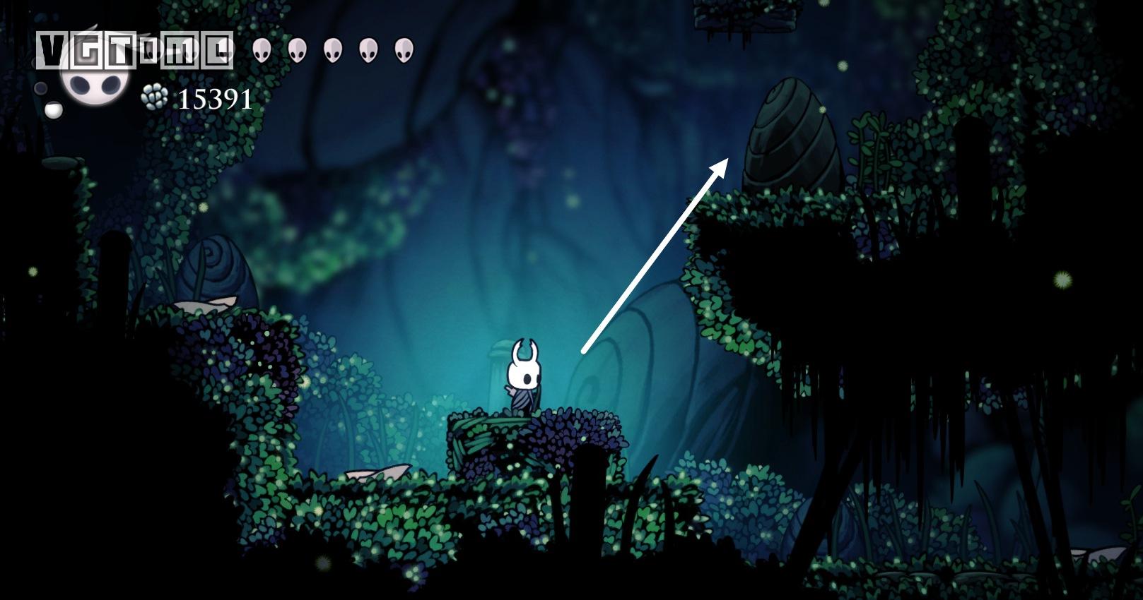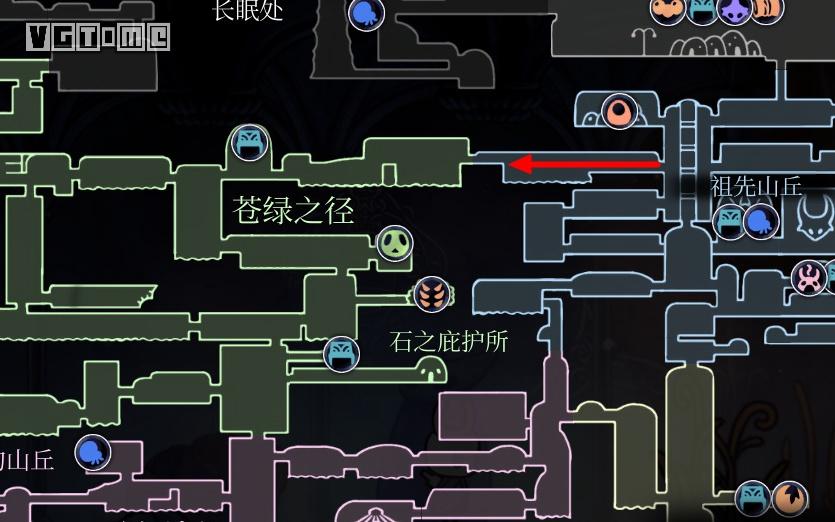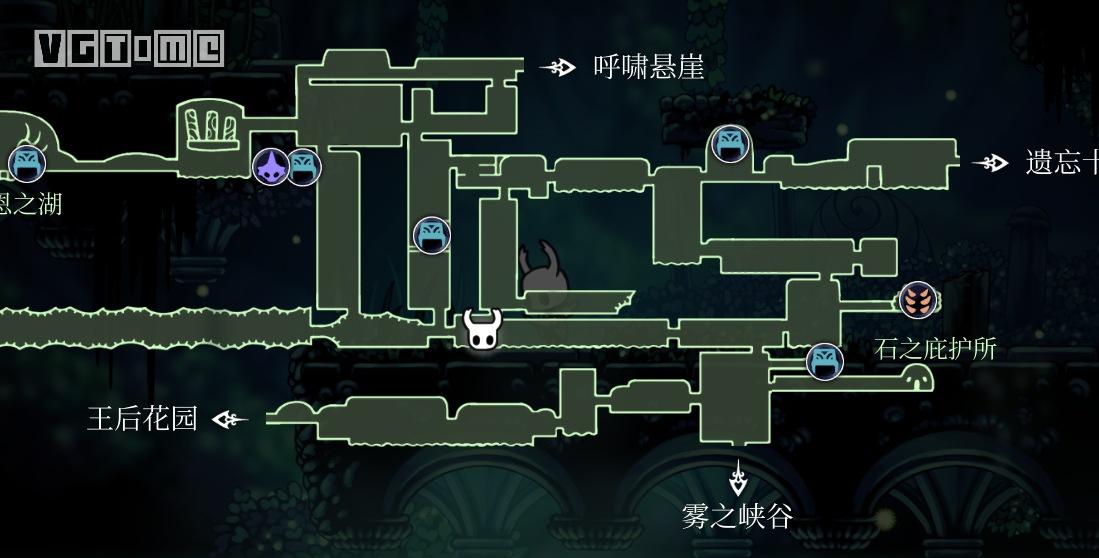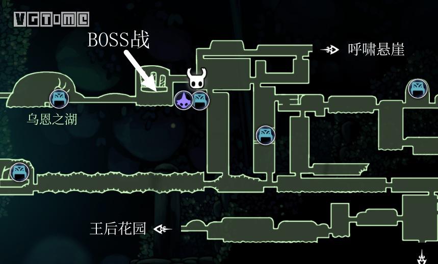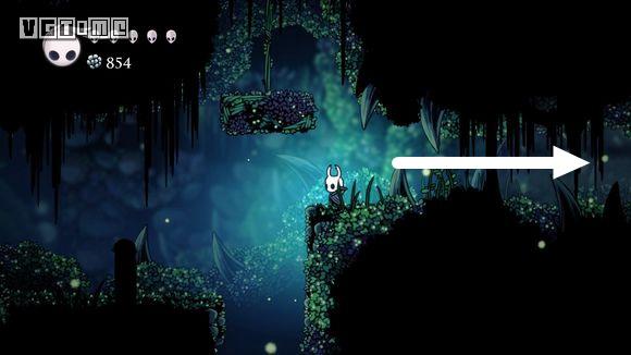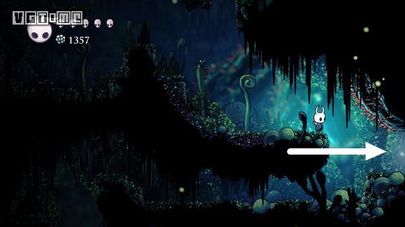 从车站出来,回到上方空间,先去解救一只幼虫,位置如下图,路上要打败一只苔藓骑士。