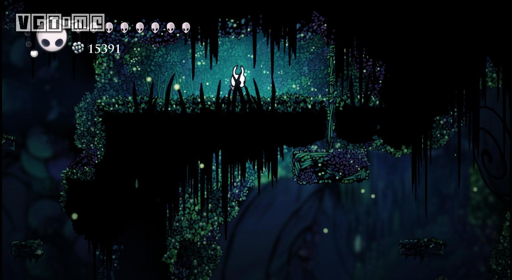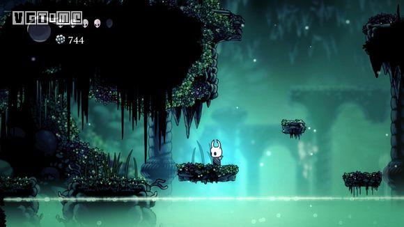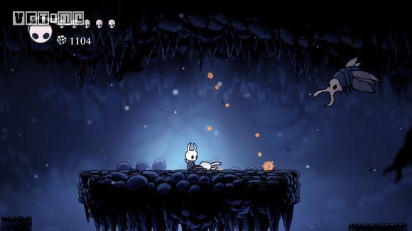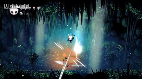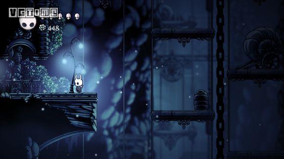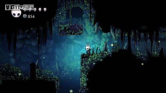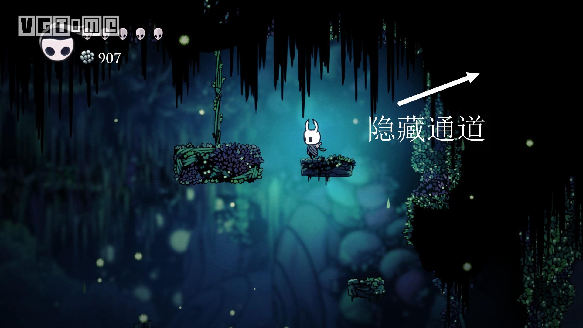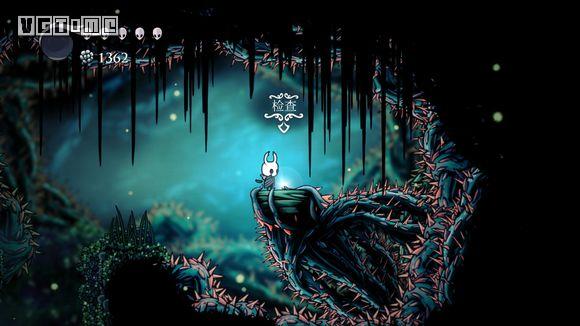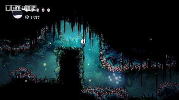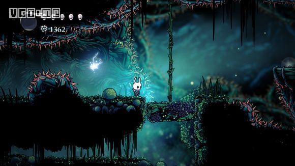 下图这个地方是最难的,如果快没血了可以直接退出到标题画面,再进游戏,从上一个存档点再出发。从墙上跳下,看准右侧通道的位置,冲刺,还要注意放电虫的放电时间。