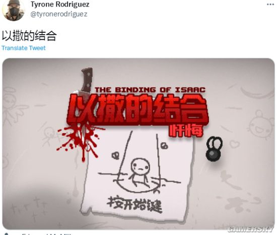 Tyrone Rodriguez在推上晒出了《以撒的结合:忏悔》的中文开始界面,并配文道“以撒的结合”,这已经是赤果果的明示了。