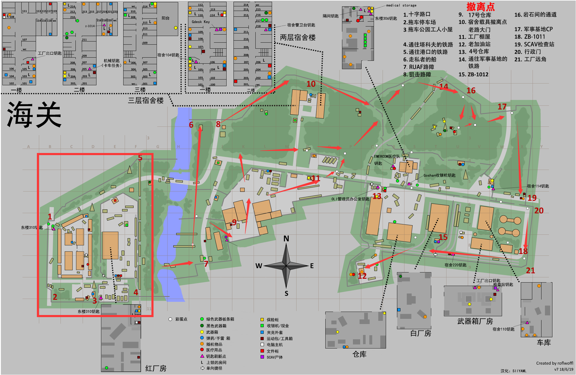这7处之外的撤离点时SCAV撤离点。不在这次讨论范围之内,但可以套用到下面的路线中。