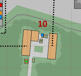 载入点分为左右两个区域(下图方形),对应的撤离点则在地图的另一侧(下图圆形,颜色对应),其中地图北侧的宿舍载具撤离点是通用的,需要7000卢布且要等待1分钟(等待期间可以离开,倒计时结束时不在此撤离点无法从此处撤离),如果有人从此处撤离,则其他玩家无法从此处撤离,而且同时最多撤离4名玩家。